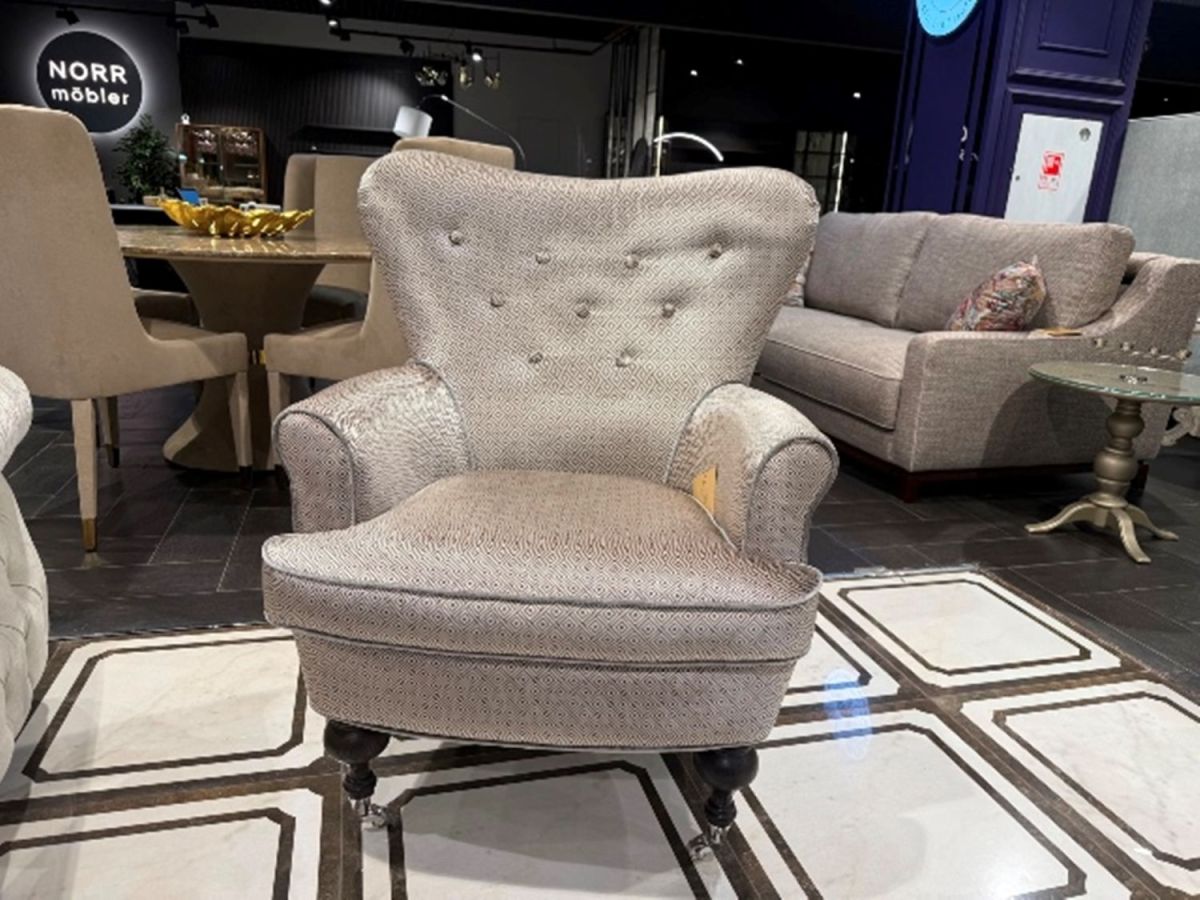 Кресло «Вэстерн» удачно дополнит интерьеры в неоклассике или ар-деко. Корпус кресла имеет контур с плавными изгибами и опирается на высокие фигурные ножки из натурального дерева.